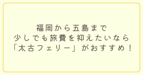 福岡から五島福江島まで少しでも旅費を節約したいなら「太古フェリー」がおすすめ!