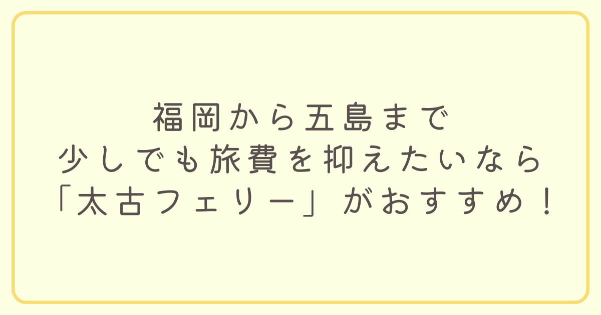 この記事では福岡と五島列島を結ぶ太古フェリーについて説明しました。